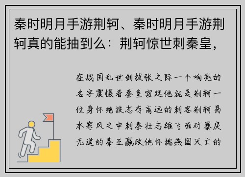 秦时明月手游荆轲、秦时明月手游荆轲真的能抽到么:荆轲惊世刺秦皇,明月之辉耀八荒
